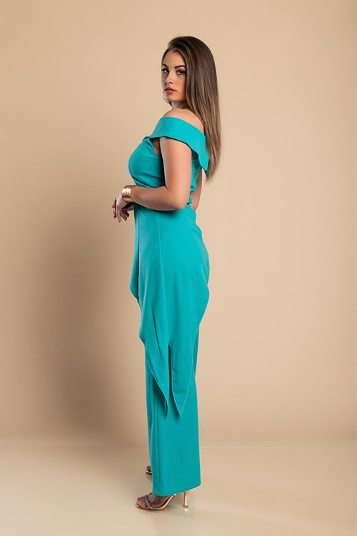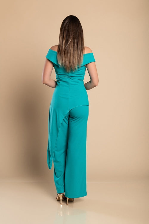 Elegantnen komplet asimetričnega topa in širokih hlač je izdelan iz mehkega in kompaktnega blaga visoke kakovosti, ki nudi popolno udobje pri nošenju. Top ima raven vratni izrez, kratke rokave in asimetrično dolžino. Hlače z elastiko v pasu so ohlapne in dolge. Na voljo tudi v večjih velikostih do 2XL.